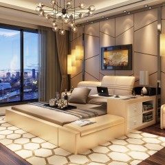 全友家居双人床软包背靠1.5米/1.8米大床卧室成套家具床123812