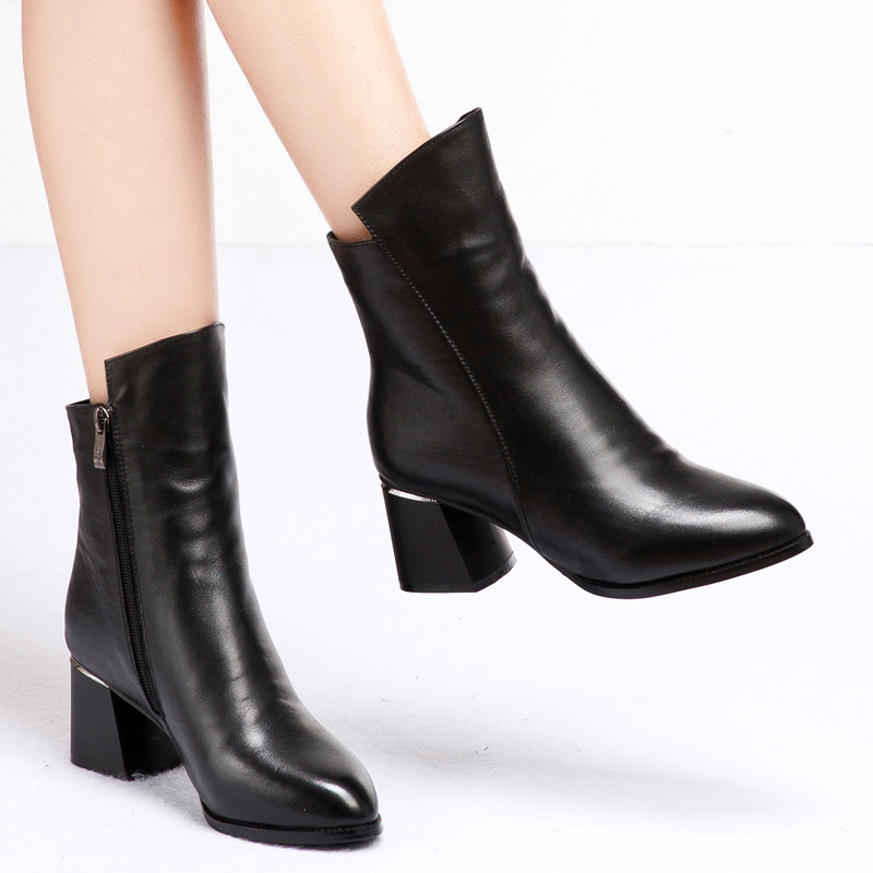 商品名称:topgloria/汤普葛罗舒适秋冬新款圆头女靴 舒适粗高跟短靴110360H 冬靴特价清仓2件9折,下单送后跟帖