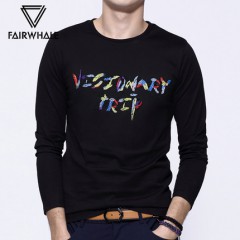 马克华菲长袖T恤男 冬季新品纯棉圆领黑白潮款印花休闲t恤 98